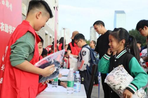 当天,华外校园的捐衣现场人头攒动,每个人都拎着大包小包,有些还拉了一个巨大的行李箱,将自己心爱的衣服、书本递到彩虹志愿者的手里。据统计,此次“彩虹1+衣”活动有近1200名小学段学生踊跃参与,共收到冬衣近3600件,书籍1000余册,经过分类整理,这些衣服将运往新疆库车县色根苏盖特小学与贵州黔西南州的纳窝学校、坡棉小学,给那里的孩子们送去温暖。